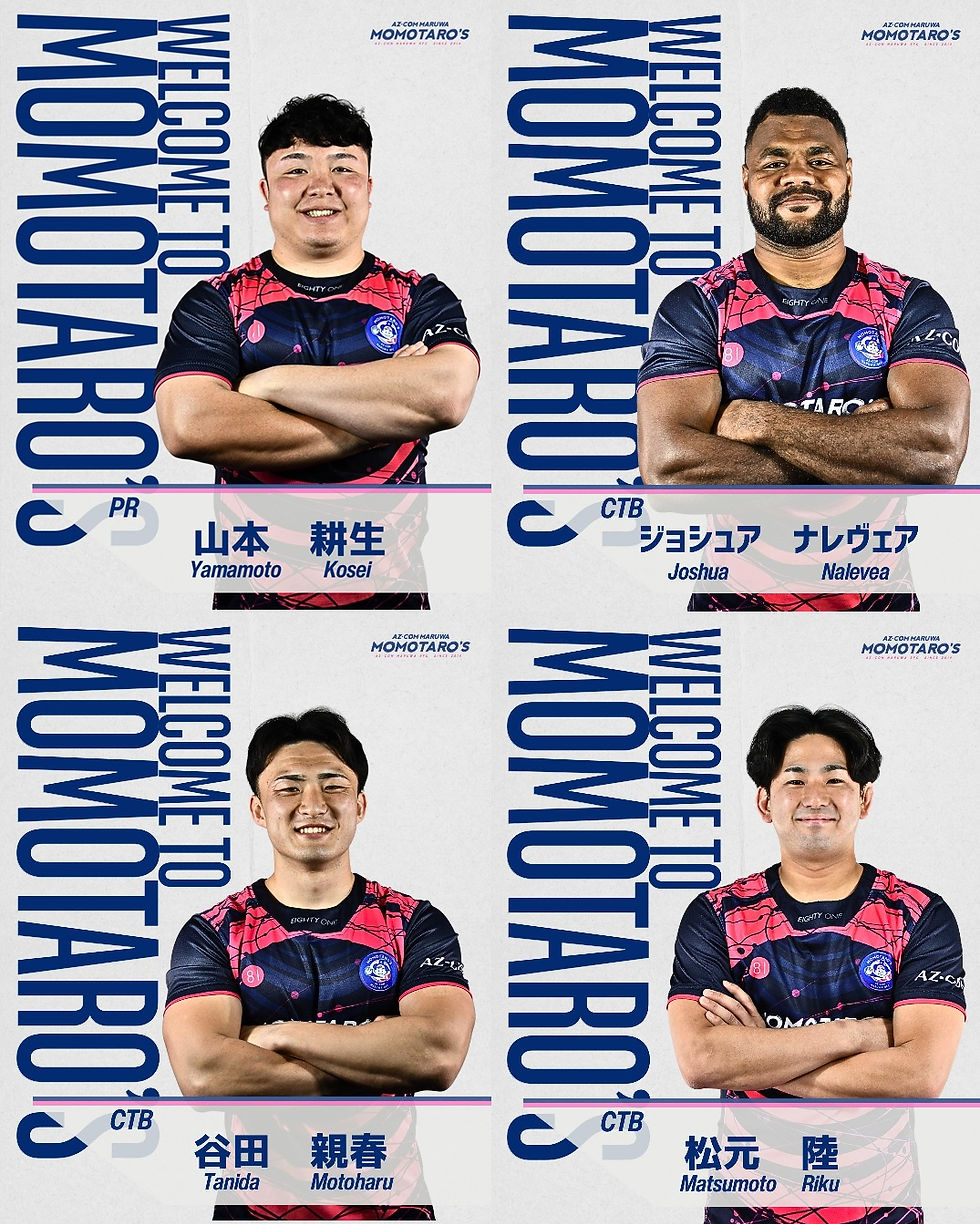 AZ-COM Maruwa Momotaro's vient d'officialiser l'arrivée de quatre joueurs. La grosse recrue est le pilier gauche Kosei Yamamoto (Tokatsu). Titulaire indiscutable chez les Green Rockets durant deux saisons (2023-2025) en League One Division 2, le joueur japonais était sans club depuis son départ de Tokatsu l'an dernier.
